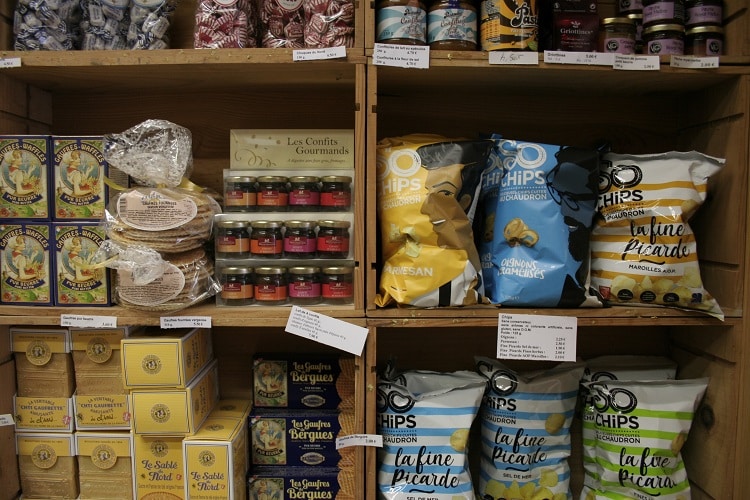 Les Bêtises sont à Cambrai ce que les nougats sont à Montélimar. Un « incontournable associé au terroir de la ville », comme l’affirme Ph. Muchembled. À la Cave des plaisirs gourmands, vous pouvez vous en procurer en ballotin, en paquet ou sous forme de liqueur alcoolisée. La vraie bêtise serait de se contenter de quelques bonbons, aussi savoureux fussent-ils. Car cette cave est un vrai cellier où l’on déniche tout ce qu’il faut pour accompagner ses boissons. A l’apéritif avec des chips de l’Oise (So Chip’s), du confit d’oignons à la cassonnade ou du pâté à la chicorée. Si vous appréciez les plats typiques, vous pourrez repartir avec une sorte de best-of gastronomique. De la pintade à la crème de spéculoos, un waterzoï de volaille ou le fameux « potjevleesch qui fait un vrai carton. » Le terme tout trouvé pour un caviste.